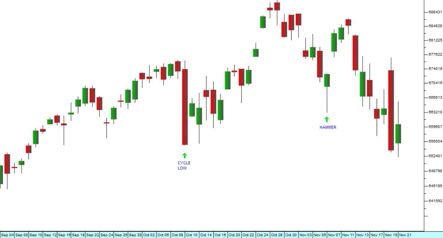 In our article, Bubble which we published about a month ago on 27th October 2025, we suggested that there was potentially an over investment in AI shares. We warned investors to take care and to maintain a strict stop-loss strategy. Since then, the S&P has entered a correction which looks much stronger than the various mini-corrections which have characterised the last six months. From a technical perspective, the S&P now has a descending double top and on the 20th of November 2025 it closed below its previous cycle low made on 10th November 2025 at 6552. This is not a good sign, and it may well cause substantial technical selling this week. Consider the chart: