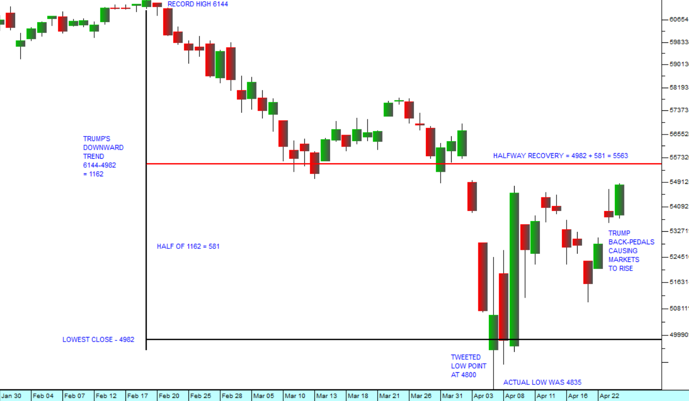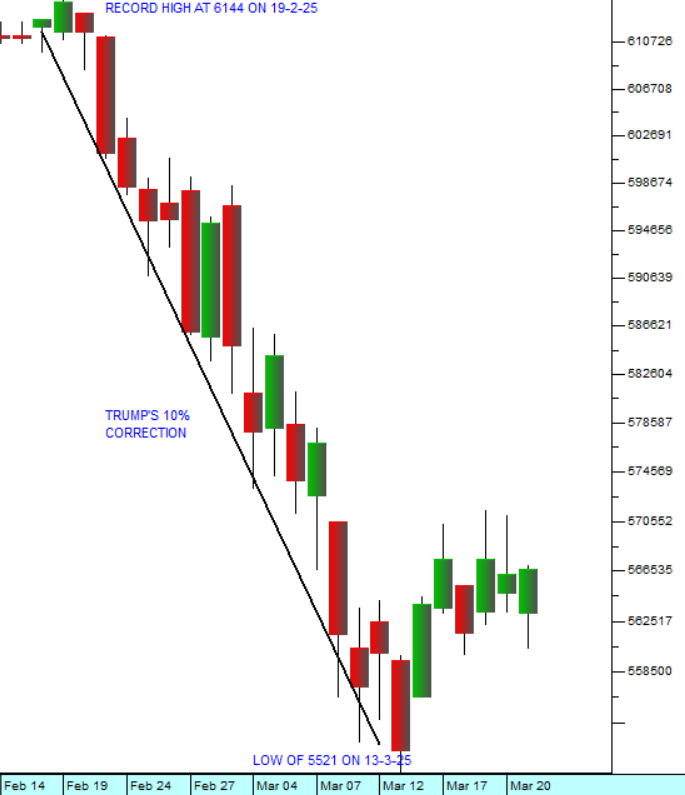 You should note the two “exhaustion gaps” in that downward trend where the index opened considerably below the previous day’s close. On Friday the index closed at 3674 – which is 23,4% below its record high. While the downward trend will be characterized by rallies, you should accept the fact that we are now firmly in a bear trend which could last for as long as two years or more. The bear trend in 1929 saw the Dow Jones index fall to just 11% of its peak level over a period of about 30 months.