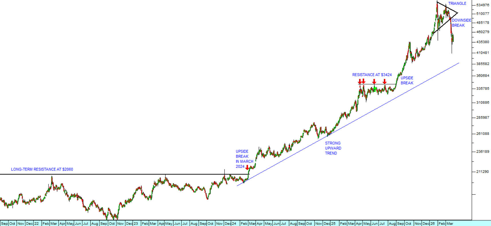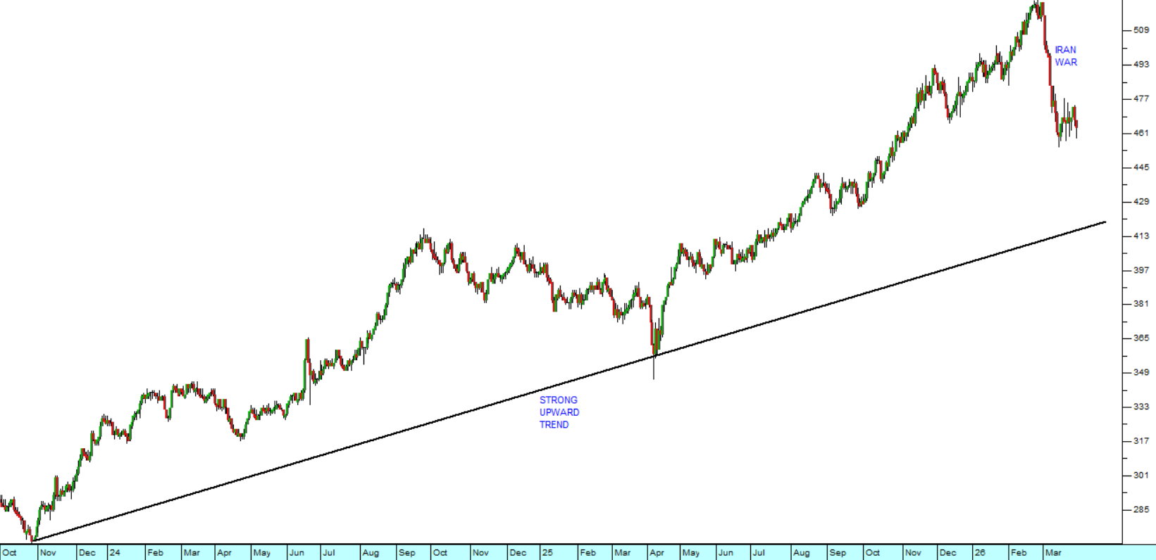 This has now been broken by the initial impact of Trump’s war with Iran, but the gold price will certainly recover from its current correction in time. It remains the world’s foremost security asset and should be accumulated on any weakness.
